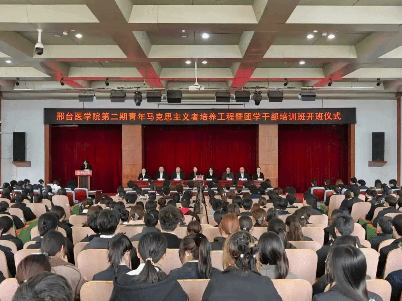 近日,我校第二期青年马克思主义者培养工程暨团学干部培训班开班仪式在学术报告厅举行,校团委书记杜庆岩、各系团总支负责人及260余名青马学员参加。