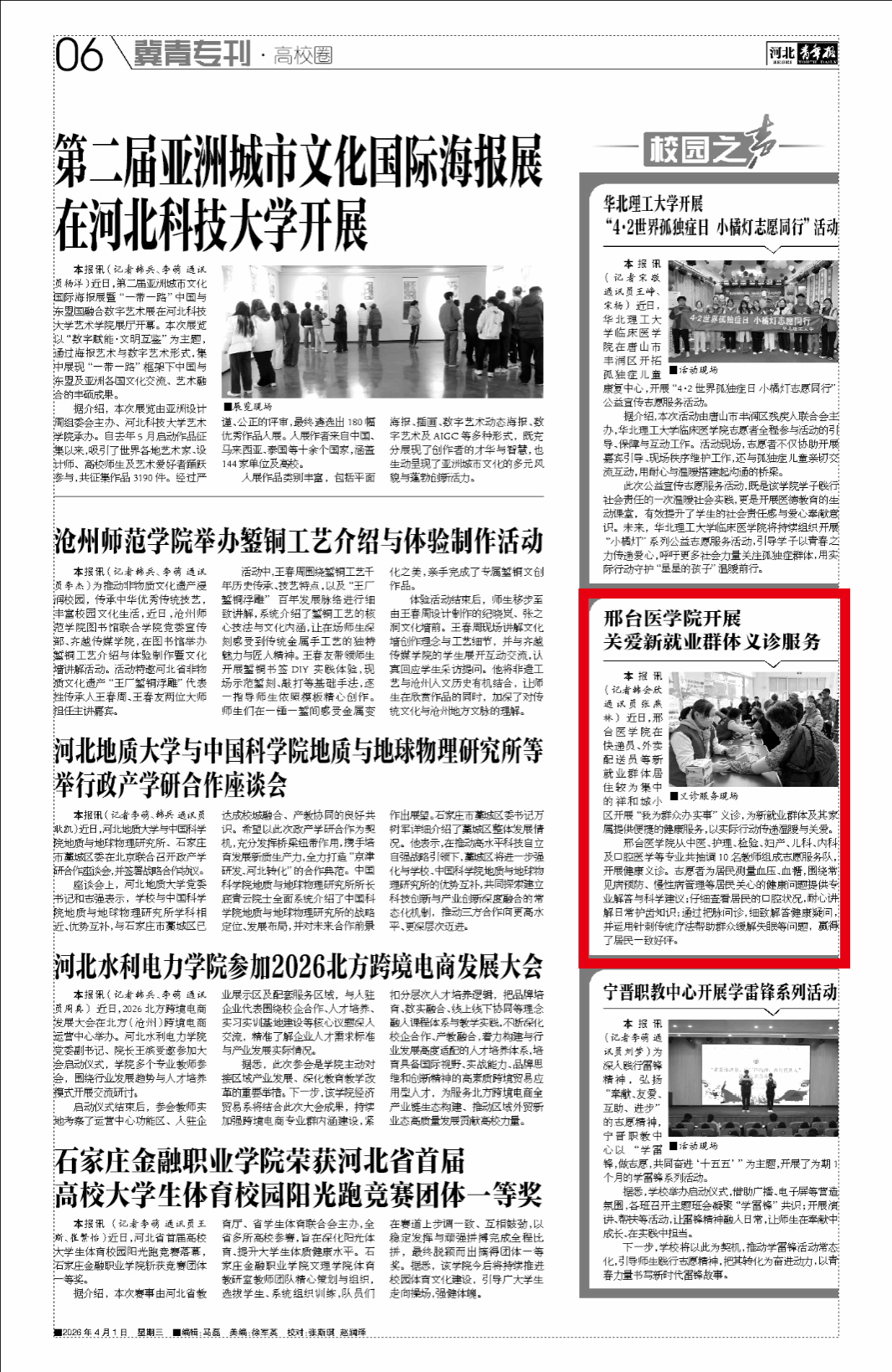近日,邢台医学院在快递员、外卖配送员等新就业群体居住较为集中的祥和城小区开展“我为群众办实事”义诊,为新就业群体及其家属提供便捷的健康服务,以实际行动传递温爱与关爱。